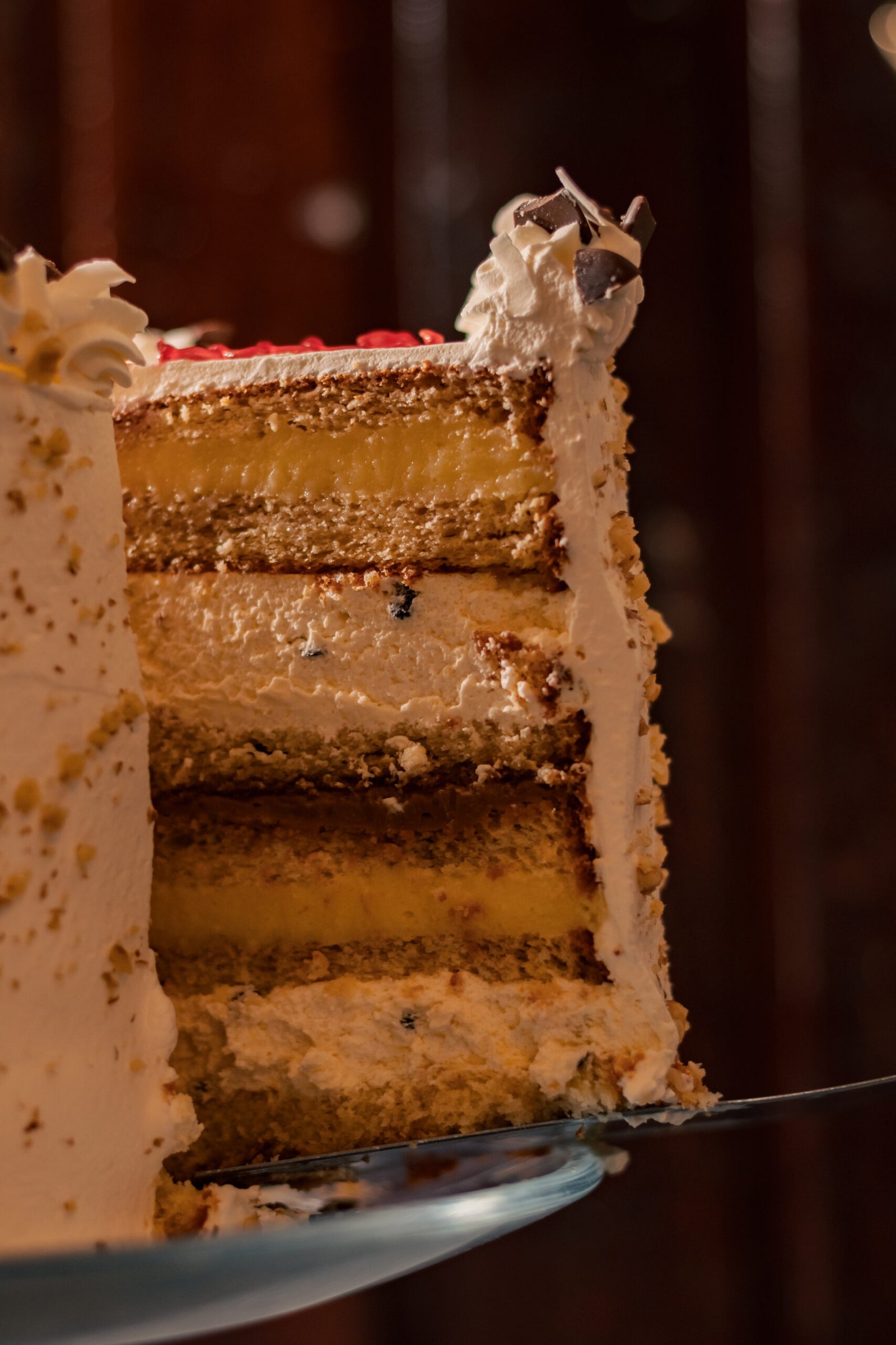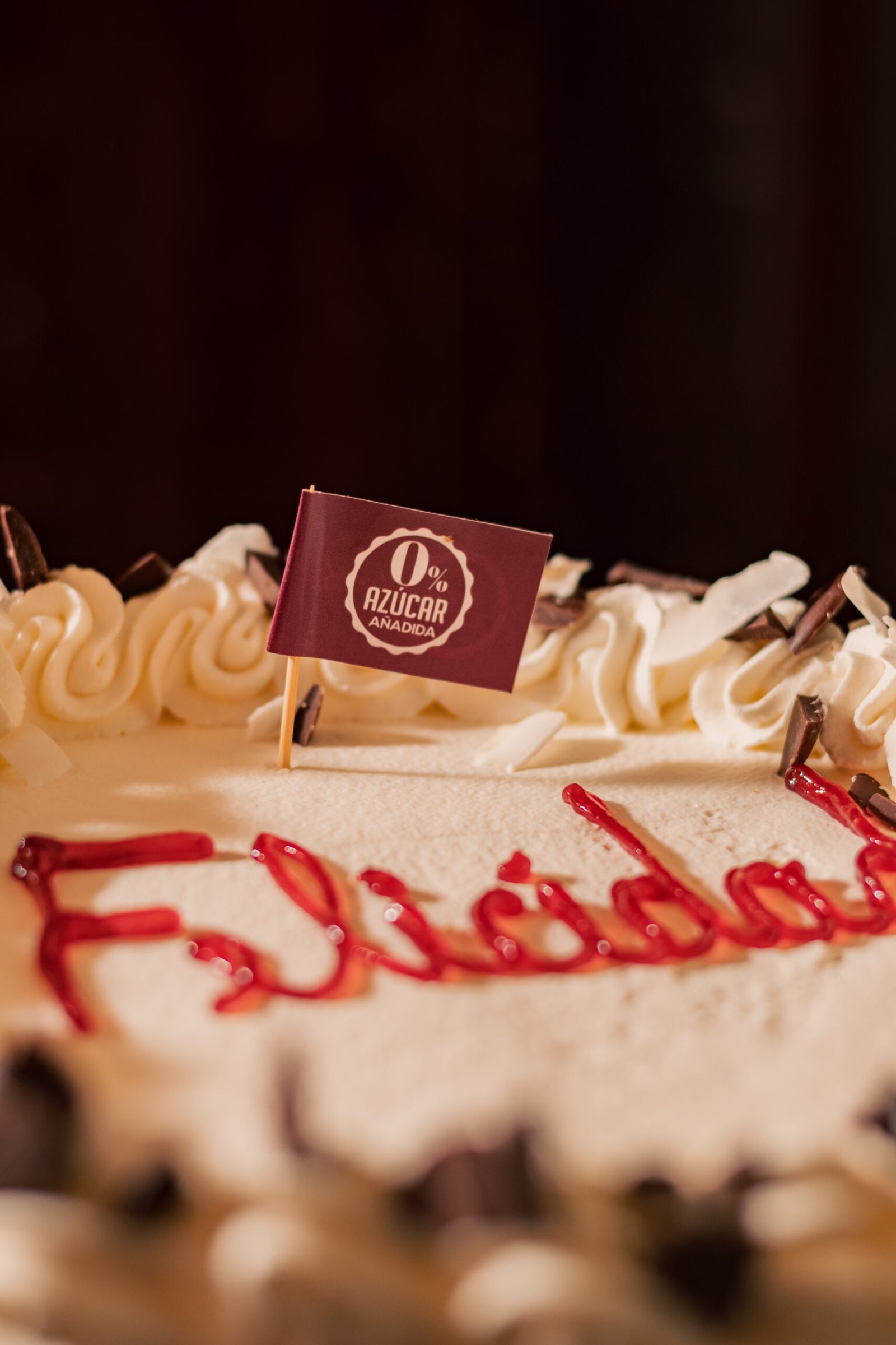 Bizcochos blanco de fabricacion propia, endulzado con alulosa, rellano con manjar sin azucar, crema chantillí de maracuyá sin azúcar y crema pastelera sin azúcar. Por fuera es cubierta con crema chantillí, nueces picadas por el costado, decorada con coco en laminas y chocolate sin azúcar en trozos. Cabe destacar que este producto es libre de azucar refinada pero contiene carbohidratos.